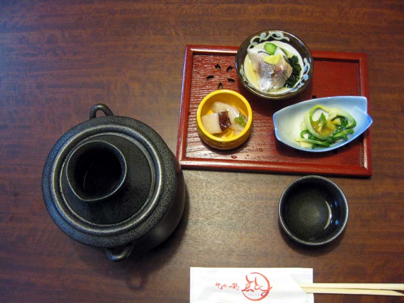 最初に澤正宗純米酒のお燗酒をお願いしましましたら、素敵なセットと湯燗された純米酒が出てきました。すごく美味しかったです。