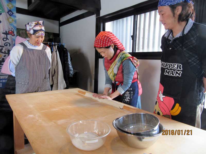紅葉庵に温泉好きのグループの方々が来てくれました 2018年1月26日 お知らせ 61 views 青森、東京、神奈川と多彩な県の方々で男性と女性の混合グループ 全国の温泉入浴するのが趣味とのこと 中には3000湯を踏破した強者も含まれていました。 すごい人と感心しました。 でも中には若く新婚のかたもいらっしゃいました。 そば打ちは皆様上手、 とくに体は大きいのですがそばを大変細く切ってくれた方もいらっさいます 結構、皆様そば打ちが上手、それにそば好きです。 青森のそばよりおいしいいと言ってくれました。