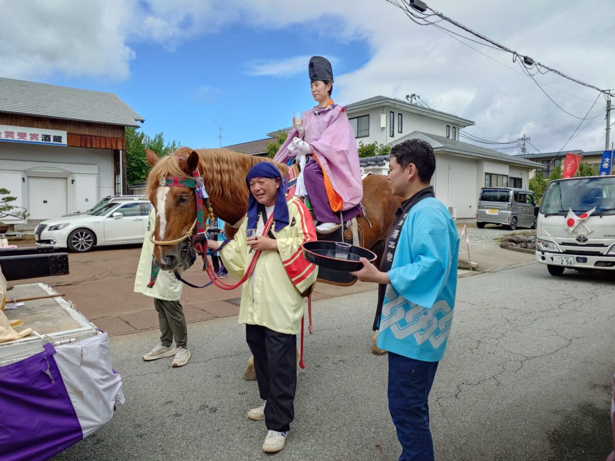 弊社でもこの日に、行列の方々に「紅葉盛」をふるまいました。紅葉盛は、古くから寒河江やその周辺で親しまれてきたお酒で、地域の暮らしに深く根付いた一本です。親しみやすい飲み口と、飽きのこないすっきりとした味わいは、昔から多くの方々の食卓を支えてきました。「お祭りといえばやっぱり紅葉盛だね」と声をかけてくださる方も多く、このお酒が地域にとって欠かせない存在であることを、改めて実感します。