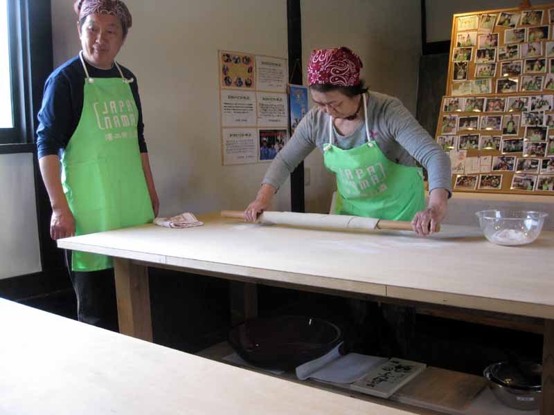 まったく初めての方が2名、残りの方は2回目でした。さすがに2回目の方はお上手、水回しも丁寧におこなっえくれ、のし方も上手、さらにきり方は先回よりも数段上手になりプロは出しのそば切りでした。
