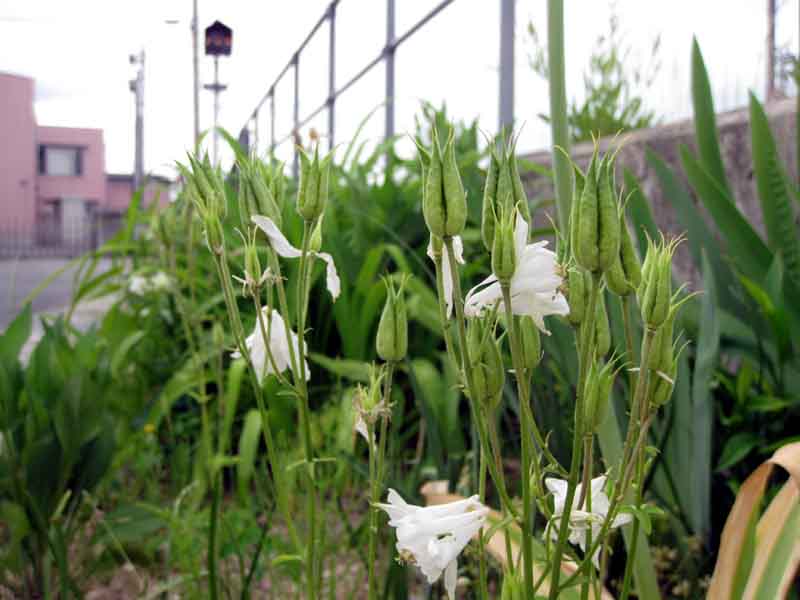 今朝の散歩で見かけた花たちとアイデアの看板です。