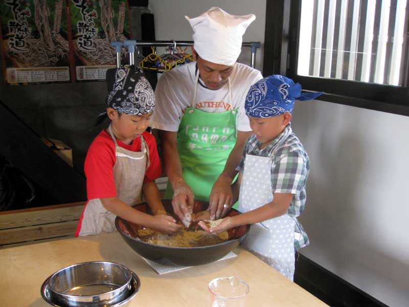 この子供さん二人がすごいちゃんのとそばを打ちました、本人達もそば職人と喜びながらチャレンジです。でも本当に上手に打ちました。