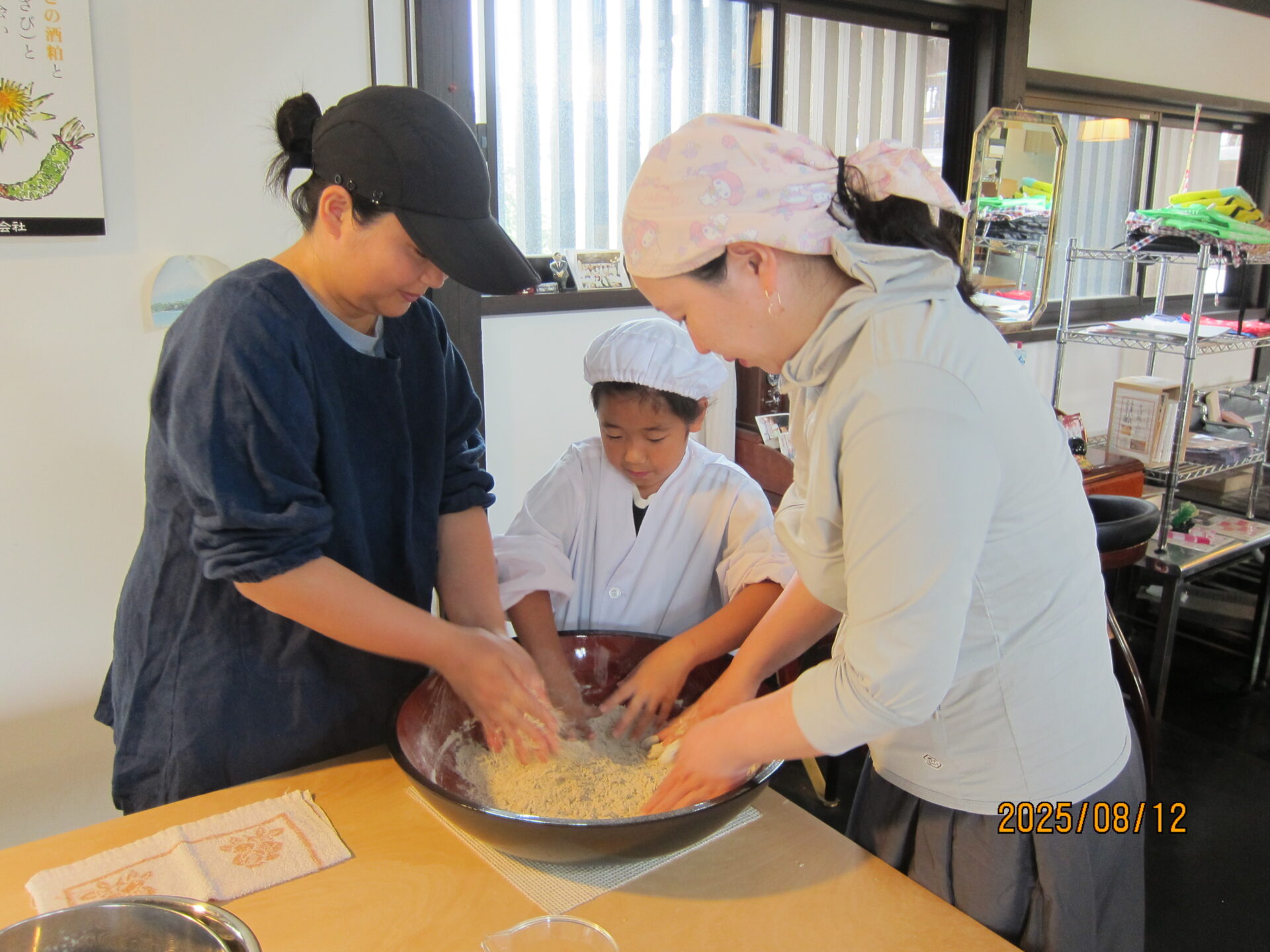 東京から女の子とお母さんがそば打ちに来てくれました 2025年8月14日 そば打ち処紅葉庵 189 views 目次 東京から田舎暮らしを体験したく、山形に来たお母さんと娘さん、そば打ち体験です。 大変利発的なの子供さんで積極的です!ただ背が低いので、そば切りはできませんでした。そば打ちはみなさん上手にできました。 おいしおいしいと好評でした