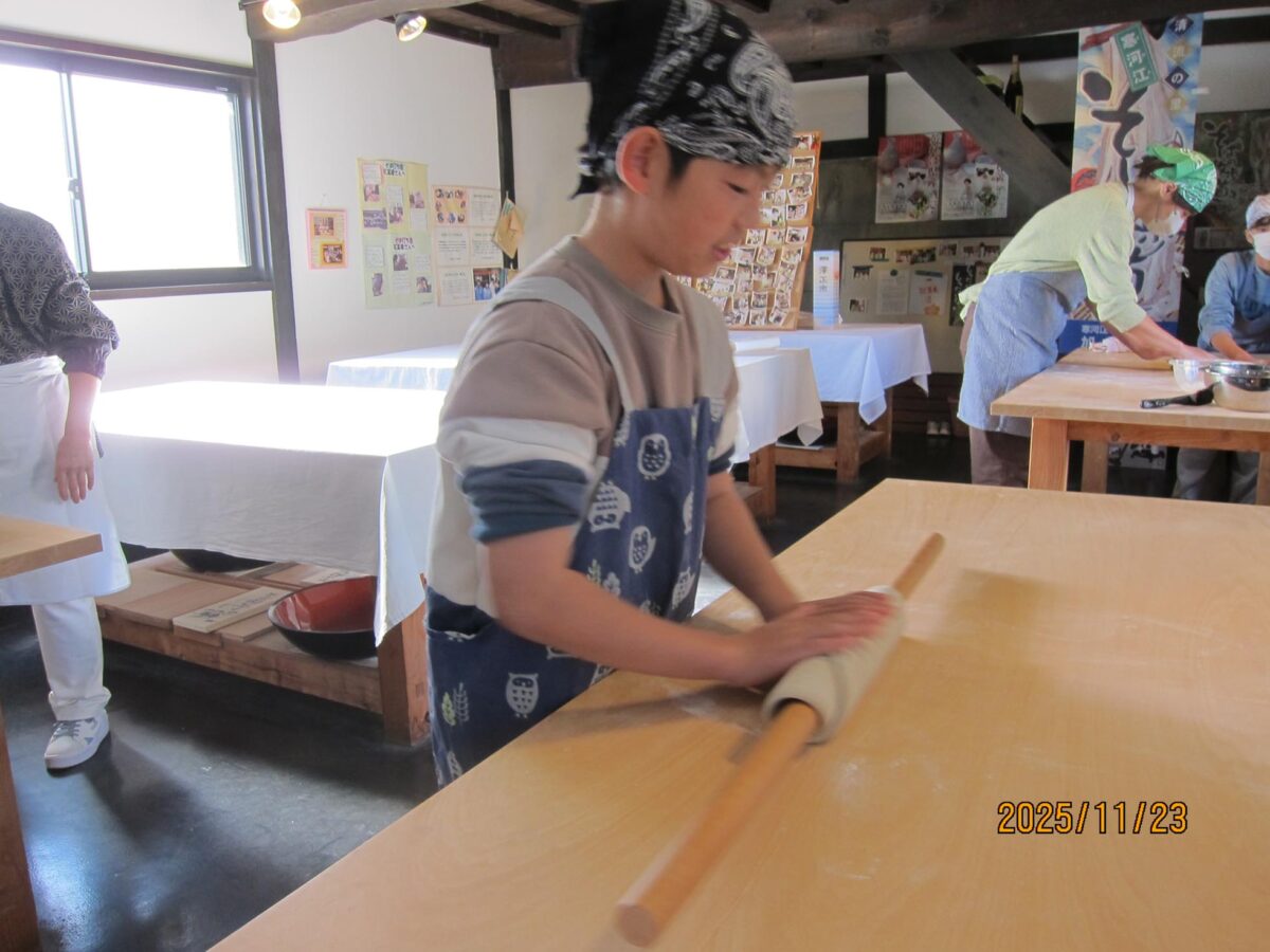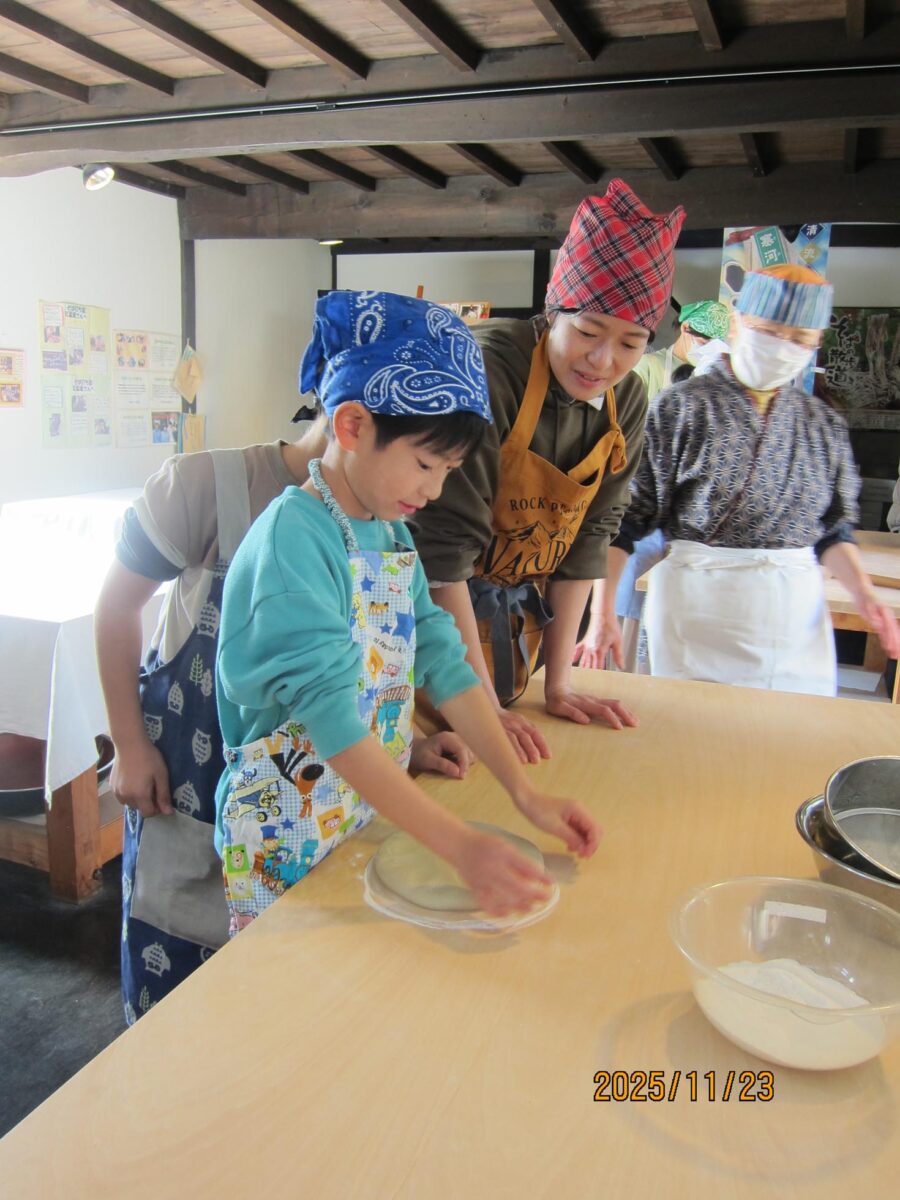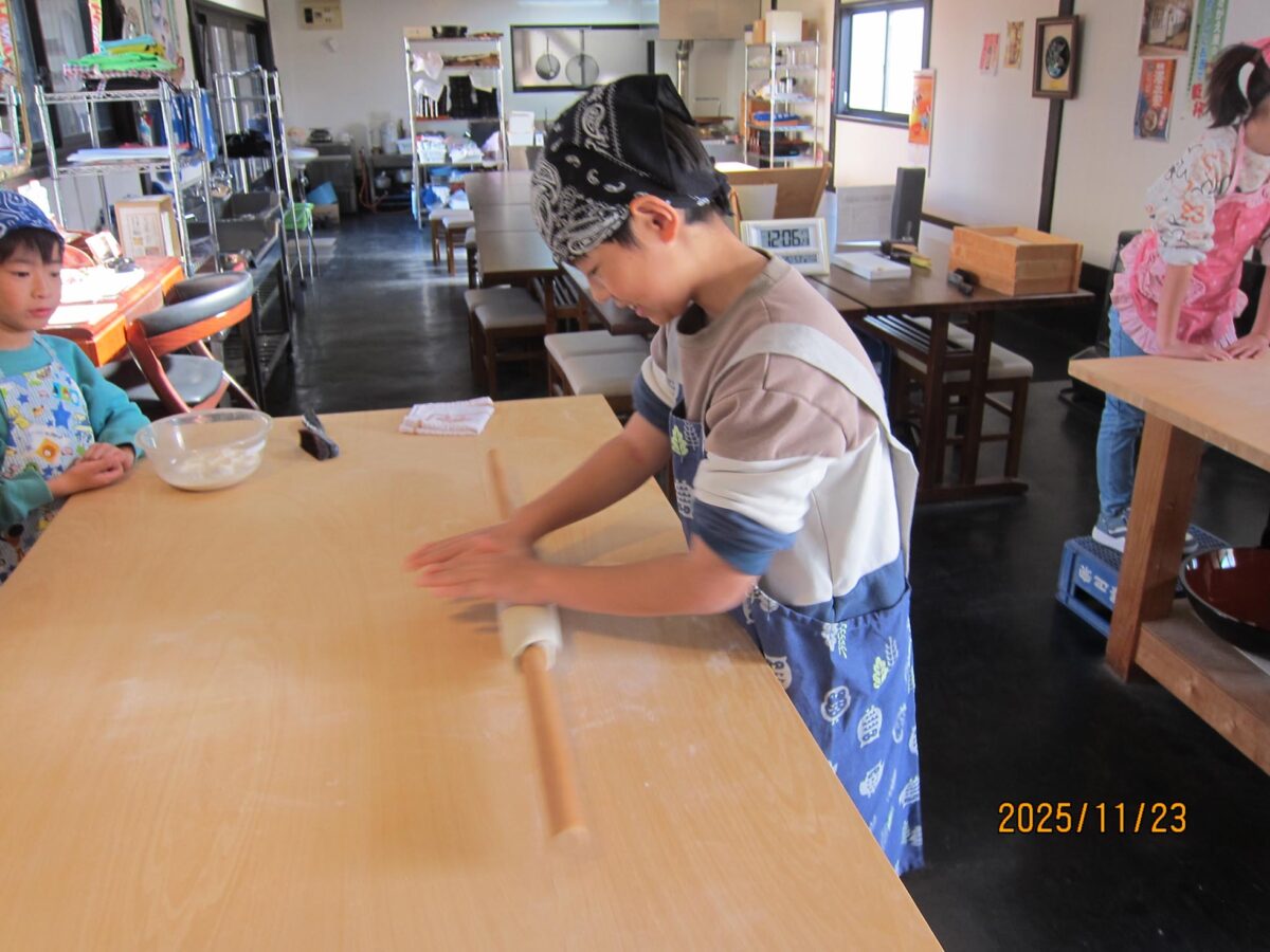 東内楯子供育成会がそば打ち体験に!小学生6名と保護者が紅葉庵で挑戦しました