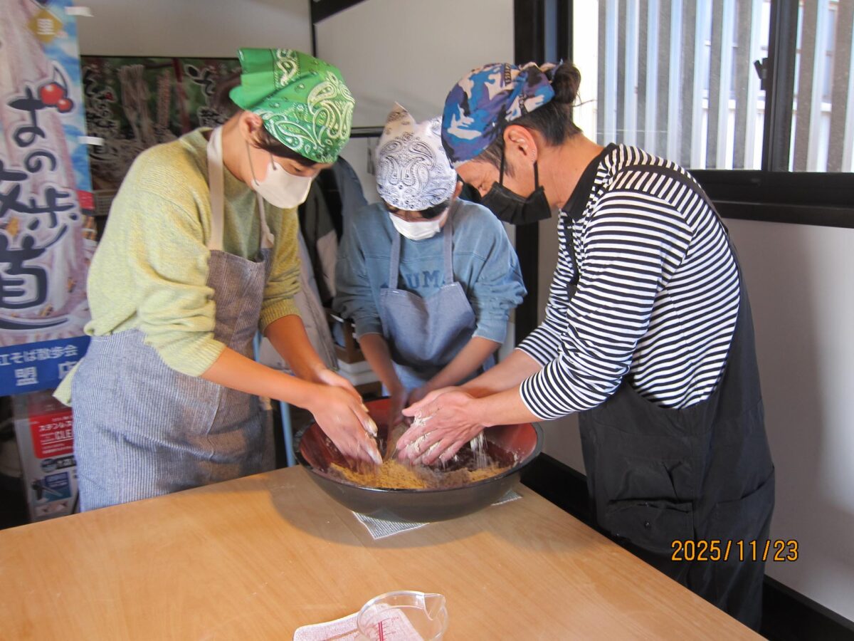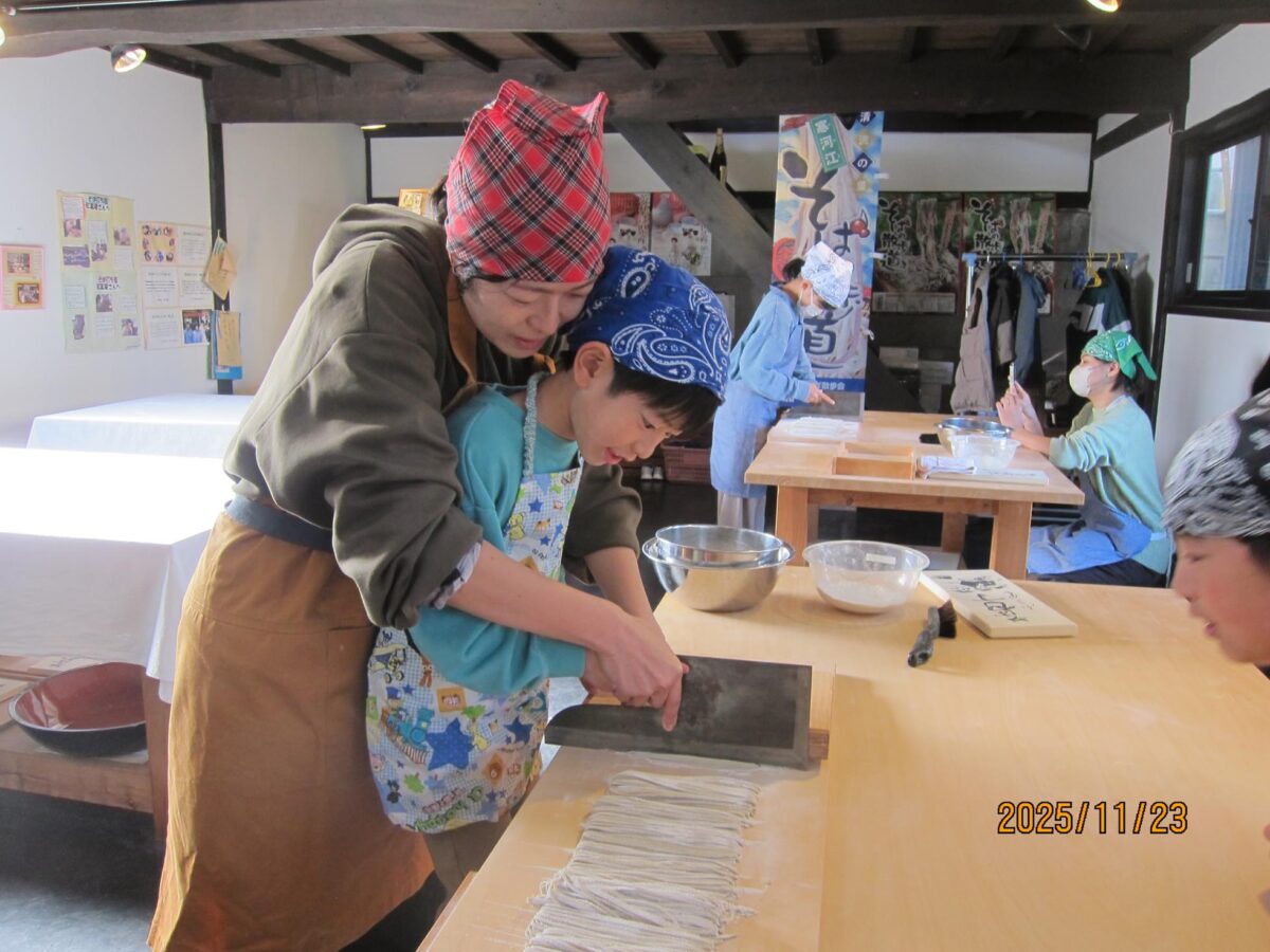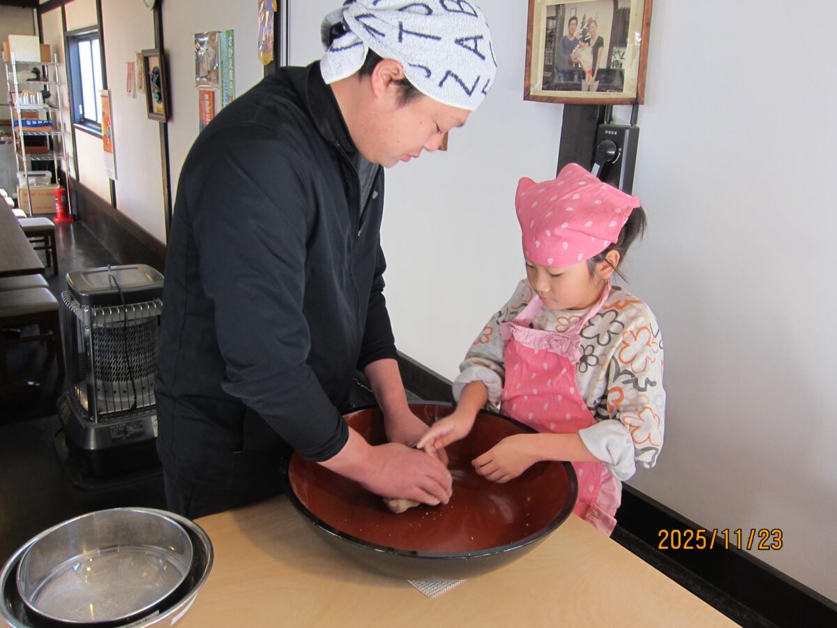 東内楯子供育成会がそば打ち体験に!小学生6名と保護者が紅葉庵で挑戦しました