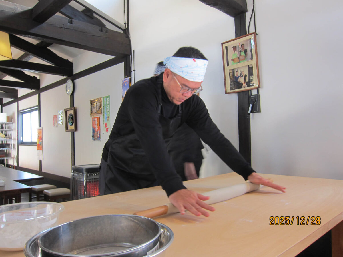 先日、インドネシアから来日中のご家族が、そば打ち処紅葉庵にそば打ち体験に来てくださいました。